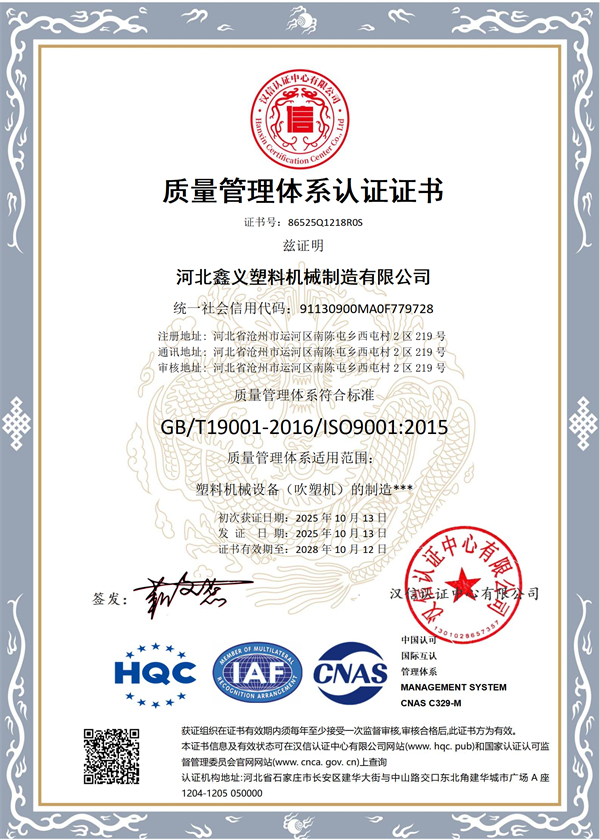 河北鑫義塑料機械制造有限公司地處渤海之濱滄州市,靠近天津港、天津國際機場和北京國際機場,有便利的交通運輸環(huán)境,公司占地6000平方米。